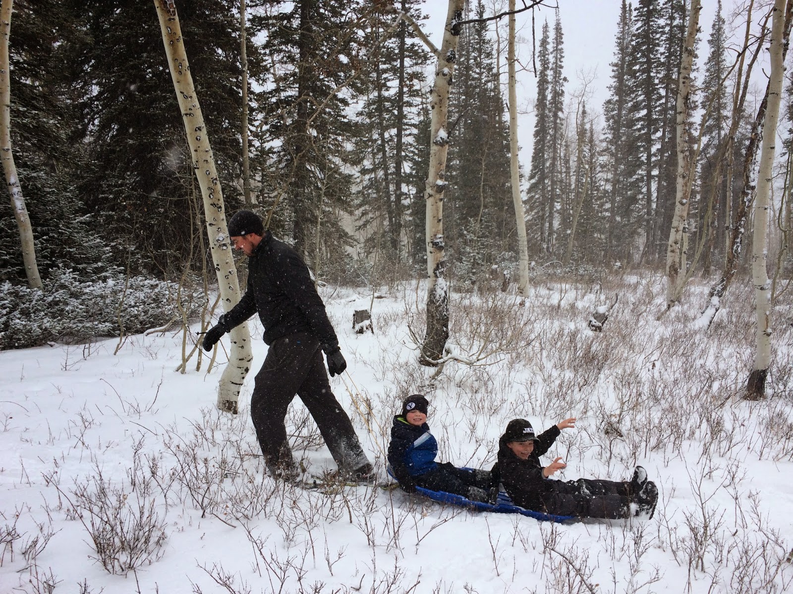 We learned a few things from our adventure last year-- one of them being to bring a sled to pull the boys in while on the hunt.